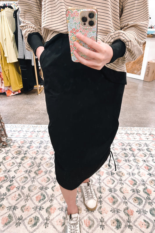 Woven Drawstring Skirt Black - 3XLARGE