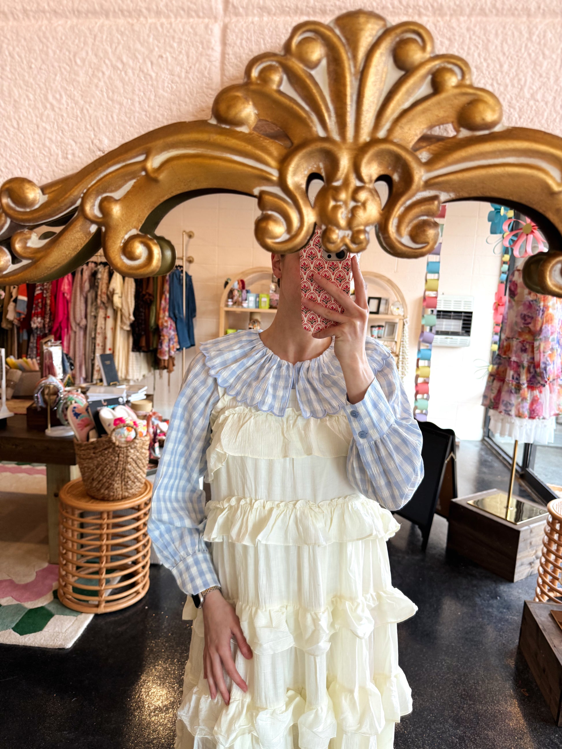 Blue Gingham Plaid Collar Top