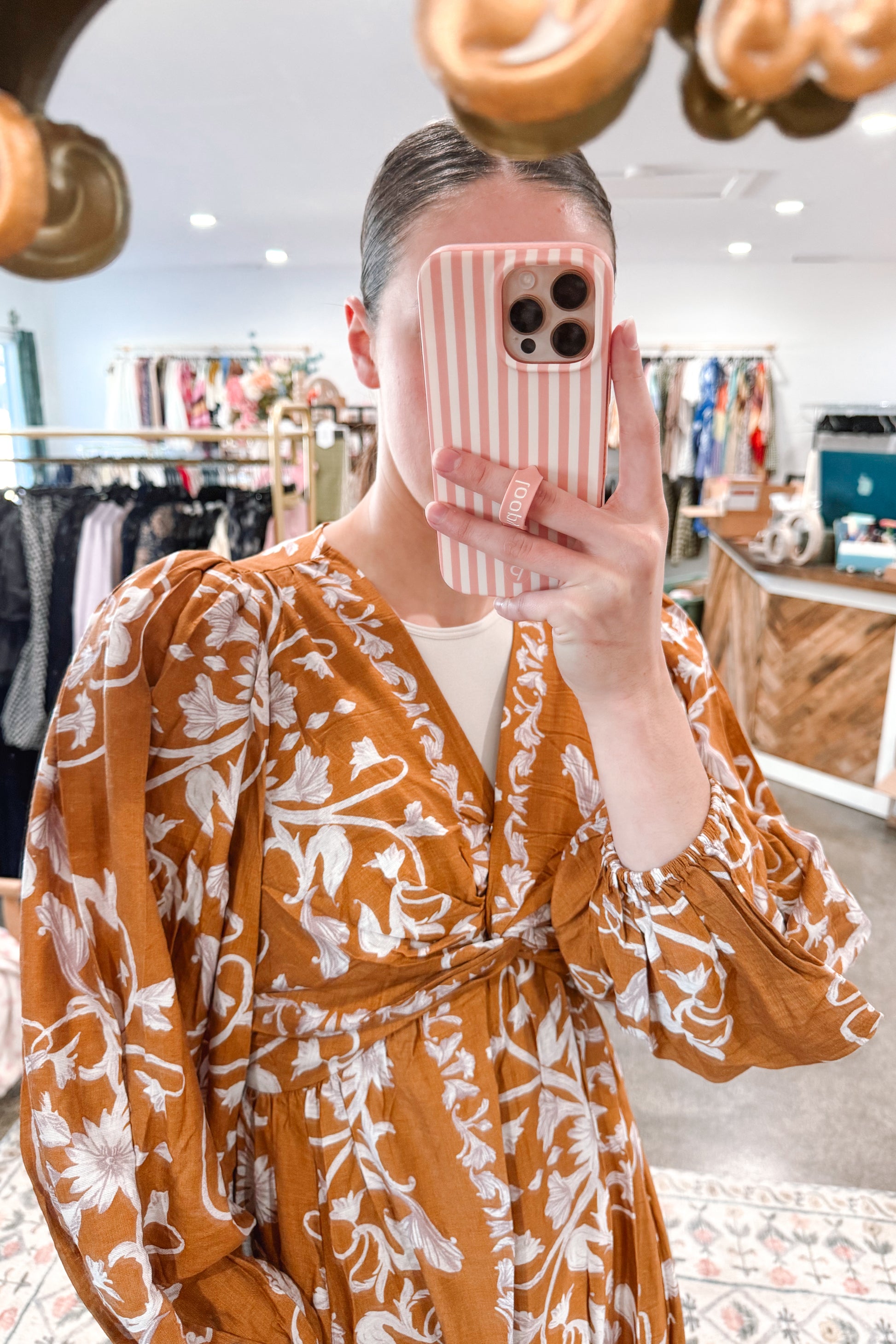 -DEEP V-NECK -WAIST TIE -SIDE POCKETS -FRONT TWIST TIE -RUFFLE BOTTOM SKIRT -LONG BUBBLE SLEEVE